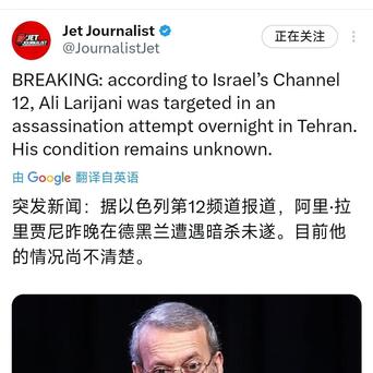 突发新闻:据以色列第12频道报道炒股配资配资官网,阿里·拉里贾尼昨晚在德黑兰遭遇暗杀未遂。目前他的情况尚不清楚。